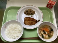 【献立】有機米ごはん牛乳吉野汁いわしの蒲焼き豚肉と切干大根の炒め物今日は旬のいわ...