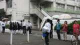 毎週火曜日のあいさつ運動です。先ほどから小雨が降り出しました。生徒会が呼びかけて...