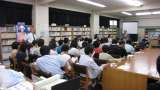 校務用パソコンについての研修会です。講師の方の説明を真剣に聞いています。