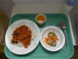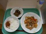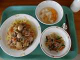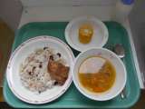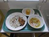 7月18日(火)、今日の給食はジャマイカ料理のチキンスープ、スチームコーン、ライ...