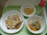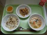 【献立】 高野豆腐のそぼろ丼 牛乳 けんちん汁 大豆と小魚の甘辛揚げ 【今...