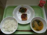 【献立】 麦ごはん 牛乳 生揚げのみそ汁 さばのみぞれかけ 磯辺和え 【今...
