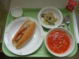 【献立】 ウインナーサンド 牛乳 ミネストローネ ビーンズサラダ カルピスゼリー...