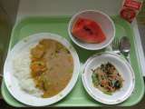 【献立】 夏野菜のカレーライス 牛乳 小松菜入り春雨サラダ 小玉すいか 今...