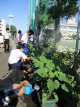 今朝の水やりには保健給食委員会が中心に集まりました。日に日に大きく成長するひま...