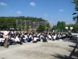 区連合陸上競技大会に向けて、練習開始です。 先ずはからだ慣らし。がんばれ。