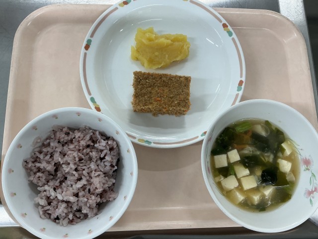 献立・黒米ごはん・松風焼き・フルーツきんとん・白身魚のすまし汁・牛乳新年最初の給食は、お正月料理の献立です。お正月によく食べられる松風焼きときんとんを作りました。今年も安全でおいしい給食を作っていきま...