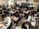 本日は英語・国語・理科の3教科です。朝から、生徒達は教科書や問題集を広げて最後の見直しをしています。
