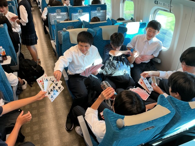 しおりの記入(会計)やカードゲームなどをして過ごしています。15時過ぎにメロンパンと飲み物も配布しました。