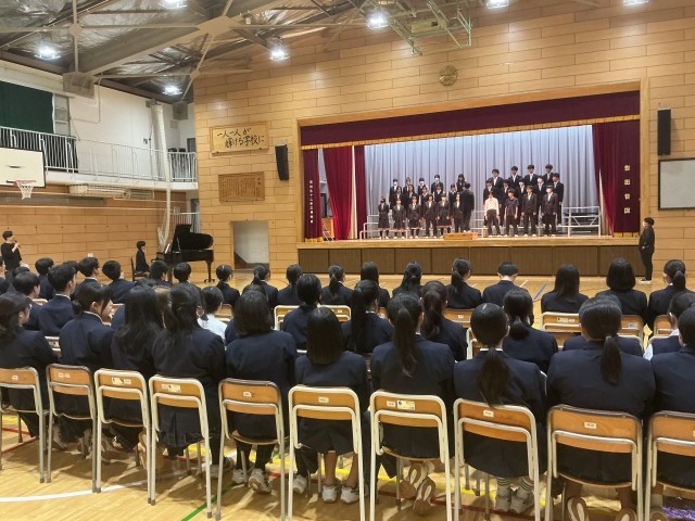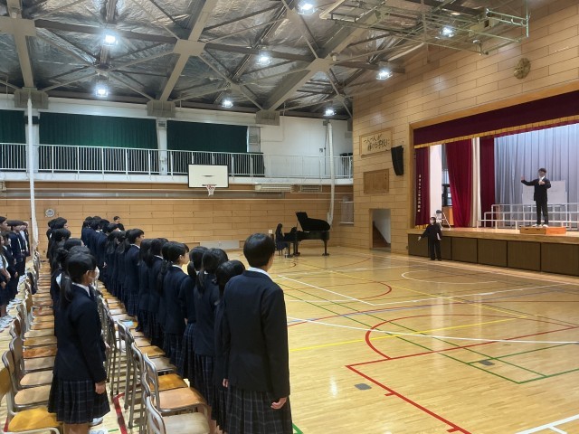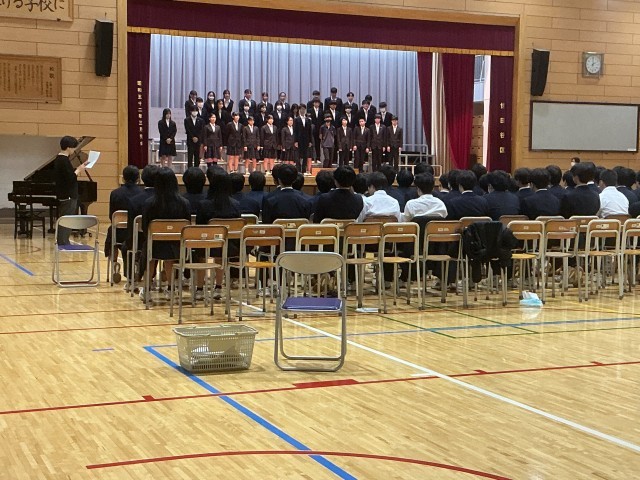 各学年、リハーサルを2回行います。1回目は、出入りの確認と学年で課題曲を歌いました。2回目は、本番通りに舞台で歌いました。本番まであと4日です。しっかり仕上げて行きましょう。