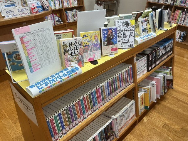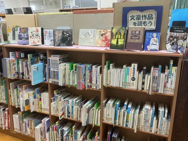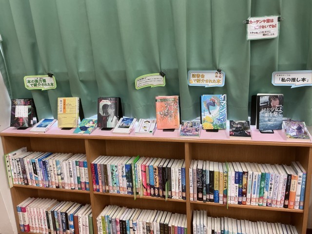 先日に新着本が来ました。話題作が多く並んでいます。1年生の授業で行った「本の処方箋」や「味見読書」の本や、「読書会」で紹介された本、職場体験した生徒のおすすめ本コーナーなど、見どころがたくさんあります。また、10月23日(木)の昼休みは移動図書館です。本の貸し出しもできます。是非、渡り廊下に来てください。
