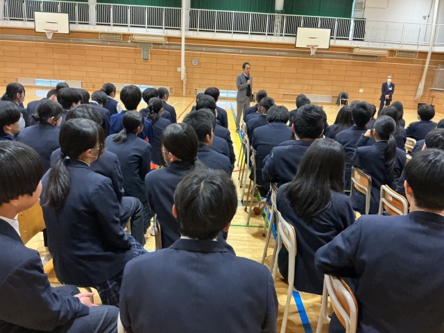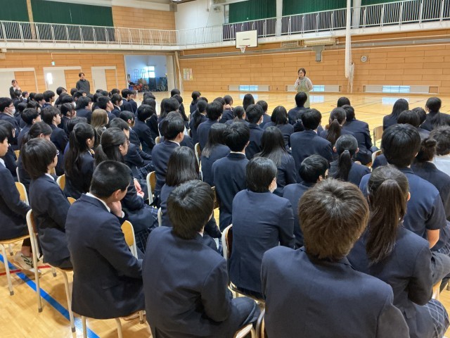 学年集会で、今後の進路についての話をしました。「受験は団体戦。みんなで良い卒業式を迎えられるように、最後まで進学に向けて協力し合い良い雰囲気作りをしていこう」という話がありました。