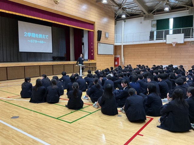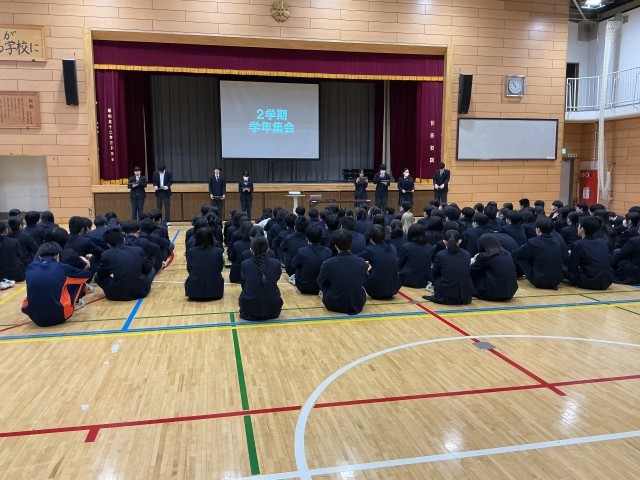3年生の集会では、学年主任の先生から現状の改善点や卒業までの取り組みについてなどの話がありました。mた、進路担当の教員から、生活リズムを整えること・効率良い学習の仕方について・受験日や合格発表日なども必ず「すぐーる」で連絡すること・受験番号や合否を伝えることなどの話がありました。