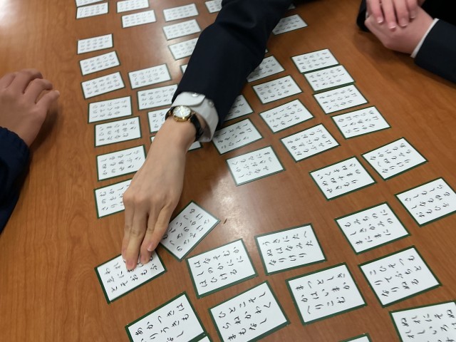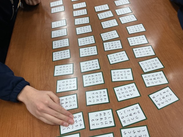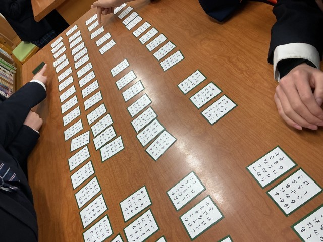 国語の授業で百人一首を行いました。「ちはやふる〜」の和歌が1番人気で、上の句で取る人が多数いました。