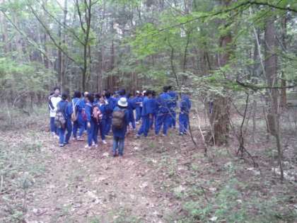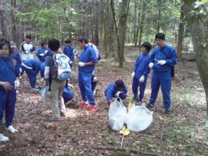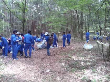 軍手をして、竹ヘラで地面を掘り起こし、ゴミを取り出します。