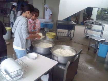 ご飯を盛り付け、いただきますの準備をします