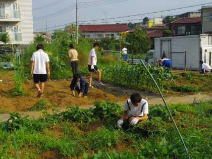 収穫物を販売しましたが、収穫、雑草取りはまだまだ続きます。部員の生徒、