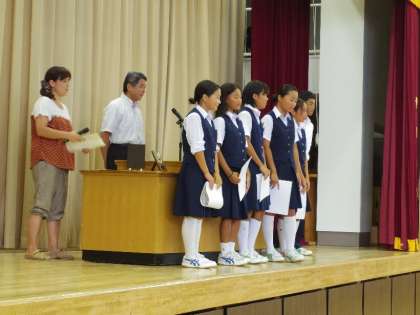 吹奏楽部(都吹奏楽コンクール銀賞)の表彰がありました。残暑の中の始業式で