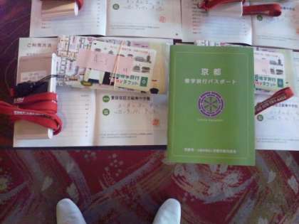 班行動の七つ道具が、しおりの他に、バス地下鉄の1日乗車券、観光パスポート(案内や地図、割引券がまとめられています)、緊急用の携帯電話(教員の本部と110、119にだけつながります)などです。