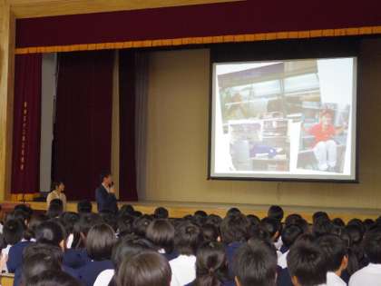 講師は、お二人の大学生です。それぞれの良い使い方と、悪い使い方をわかりやすく説明してくれました。「他人をいやな気持ちにすることを書かない」「画面の向こう側に人がいることを忘れない」ことなどを学びました。