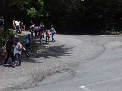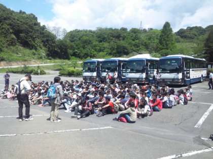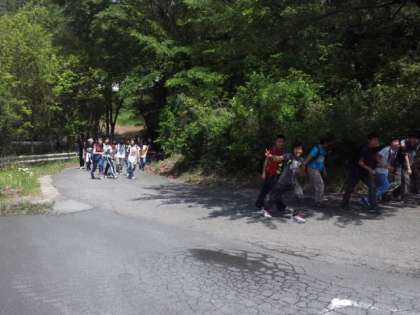 途中で交通渋滞がありましたが、無事に相模湖リゾートに到着しました。日差しがまぶしいです。坂道を上がって、クッキングガーデンに向かいます。