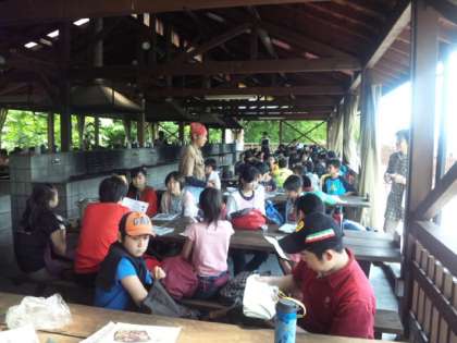 クラスごとに写真を撮影して、クッキングガーデンに到着。
