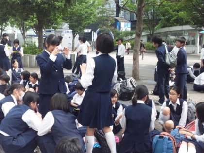 出発式が終わって、新幹線を待つ間、時間があるので、さっそくレクの始まりです。これから3日間 大丈夫かな?