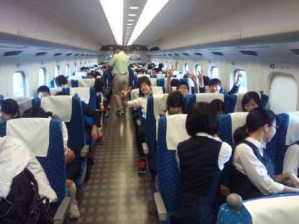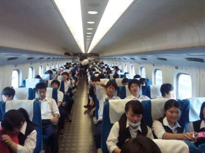 無事に全員、新幹線に乗車できました。一部の車両は一般の方と一緒です。迷惑がかからないように。