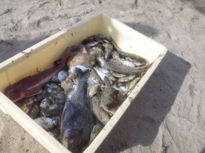 漁が終わって、一休み。取れた魚は、明日のお昼の措かずになります。