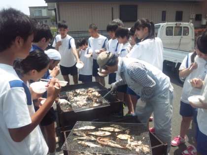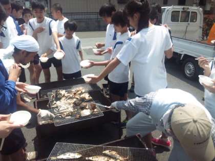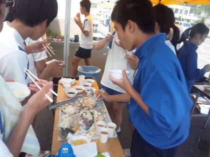 ひたすら食べます。魚に群がるという感じですね。鯛も昨日とった魚も、淡白でありながら濃い味わいです。炭火で焼くからでしょうか。