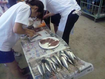 会館で干していただいてから、学校に送って来ます。来週、学校に来るときは干物を入れる容器を持たせてください。一人あたり5枚くらいお渡しします。生徒たちの手作りの成果をどうぞ味わってください。
