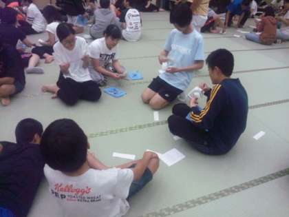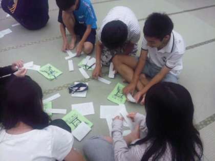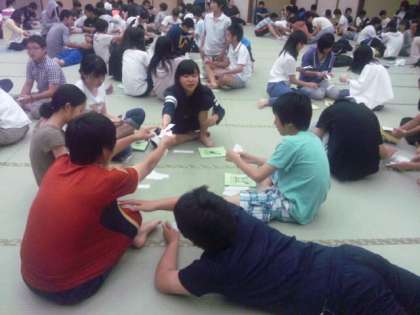 記入したカードを相手に渡していきます。内容を読んで、さまざまな表情が見られます。