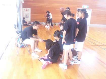 コーチや顧問から練習の指示を受けたり、撮影した動画を見ながら動きのチェックをします。
