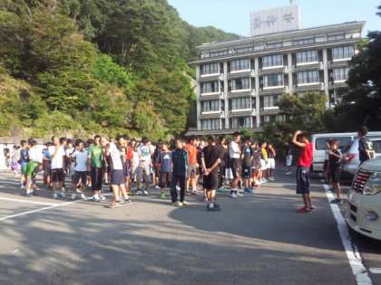 合宿二日目です。雲一つない青い空です。ただ今日は昨日と違い暑くなりそうだとの天気予報です。熱中症に気をつけていきたいと思います。