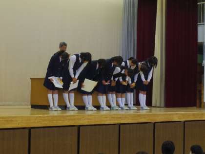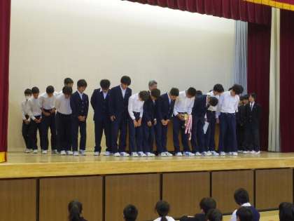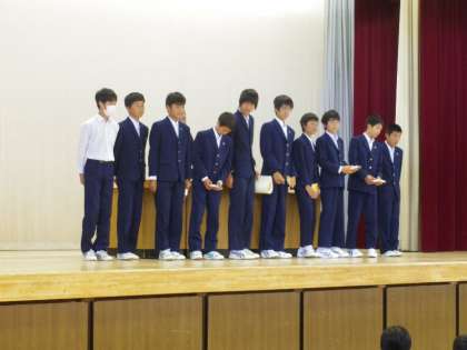 また、サッカー部の春季大会での優勝、ソフトテニス部の女子団体と個人での準優勝、男子団体での第3位の表彰がありました。