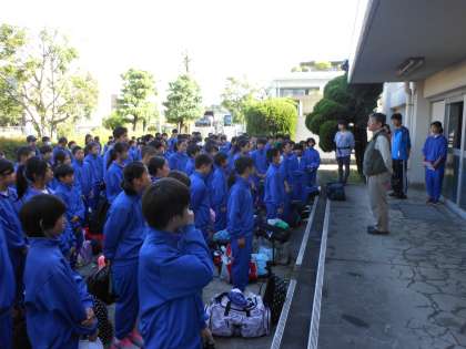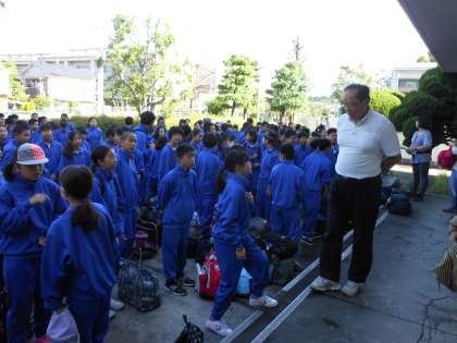 台風一過、13日 水曜日 7:50に予定通り、1年生が河口湖へ向けて出発しました。台風の心配がありましたが、昨夜のうちに温帯低気圧に変わり、今朝は青空が広がっています。天気予報では真夏日になるかもしれないということで、熱中症の方が心配です。2泊3日の移動教室、出発式で副校長先生から、3日間で大きく成長します。そのために何事にも一生懸命に取り組みましょうとのお話がありました。15日には成長した姿が見られそうです。