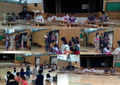 7月18日、「自立の学舎」の砧小学校で行われた「砧っ子夏祭り」に本校の箏曲部が出演しました。