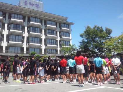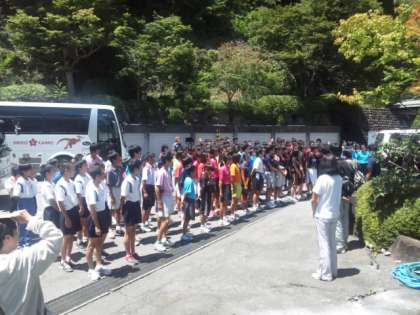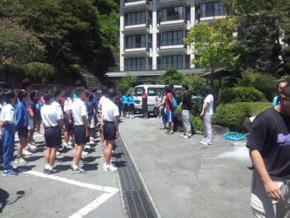 バス4台134名の生徒たちが、中央道 須玉ICを降りると、すぐに宿舎に着きます。日差しは強いですが、カラッとした空気です。