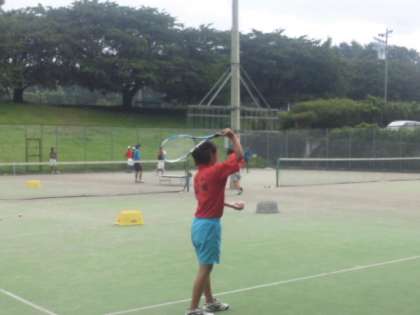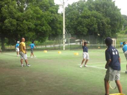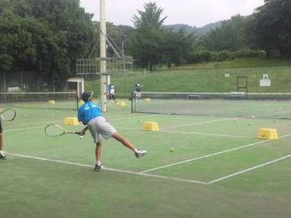6面のコートでサーブ、レシーブの練習。関東大会へ向けた3年の練習にも熱が入ります