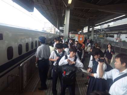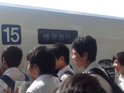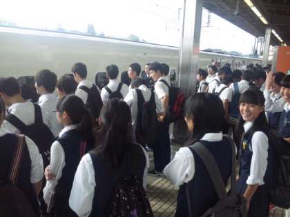 団体専用車に全員無事に乗車できました。京都に向かって出発です。
