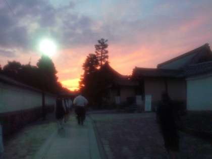 奈良から京都に入りました。妙心寺を拝観します。ここでは、座禅をしました。撮影できないので、妙心寺の西空にある夕焼けをアップします。