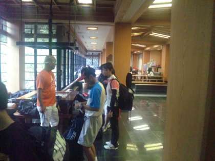 バスから荷物を下ろし、各部屋へ。昼食をとって、練習の準備へと移ります。