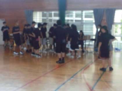 バスケット部の練習会場に来ました。宿舎から歩いて15分くらいのところにある、北杜市の須玉体育館です。