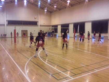 バレーボール部の会場に来ました。宿舎から車で15分位のところにある武川体育館です。バスケットの会場もそうでしたが、館内は涼しく、練習しやすい環境です。