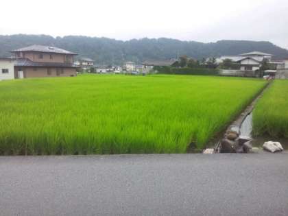 宿舎周辺の様子です。水田でカエルを見つけました。分かりますか?