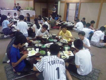 一日の練習を振り返ったり、明日のことを話したり。ご飯のおかわりを山のように盛っていく男子もけっこう多いです。