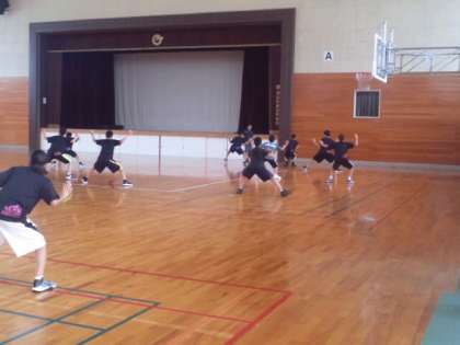 バスケット部の練習会場に来ました。今日は、集合写真を撮りに来ました。