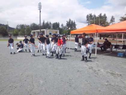 声だし練習だそうです。バックスクリーン側から、ホームベースに向かって声を出します。自分の目標を大きな声で呼び掛けています。
