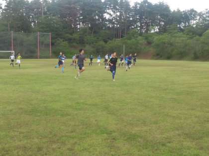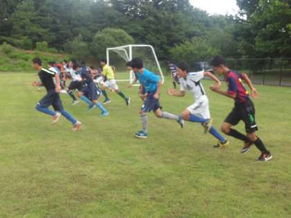 走っているところばかりの写真ですが、ボールも使った練習をしてますので、ご心配なく。