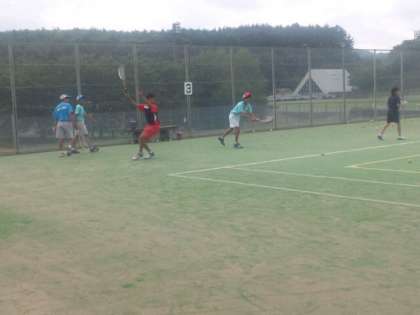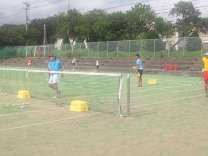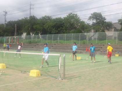 男子チームは都大会を勝ち抜き、千葉で行われる関東大会に進みます。メンバーはボレーの練習です。